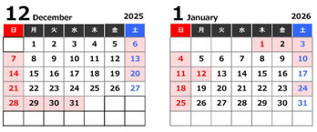 - 2025/12/23 【年末年始休業のお知らせ】2025年12月28日(日)〜2026年1月4日(日)の間、年末年始休業となります。詳しくはこちら