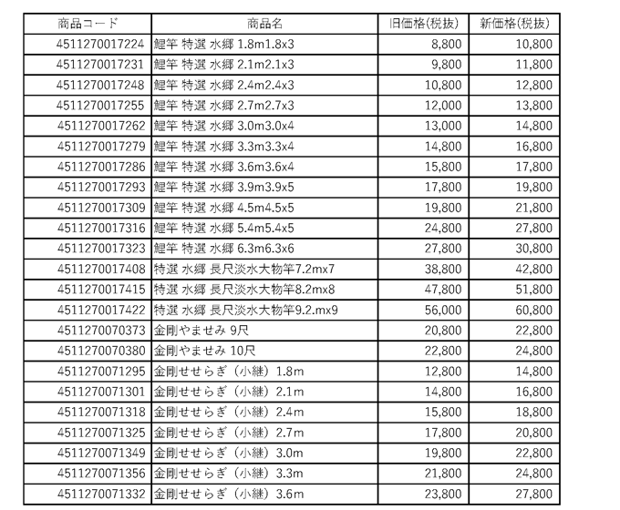 このたび、下記弊社製品の販売価格を改定する運びとなりました。