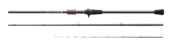 3本継からなる携帯性の良さだけでなくロッドコスメにもこだわり、ブランクスには高級感のあるパールブラウン塗装を施し、グリップ部の各パーツにメタリックパープルを取り入れ見た目にも美しく所有感を満たす竿に仕上げました。