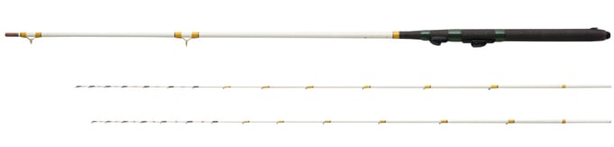 魚信を取り易いようにと、穂先も全体的にやや硬目に設計した「喰わせ調子」(硬目、軟調子)と「テンヤ調子」(硬目、先調子)の二本の替穂先付です。