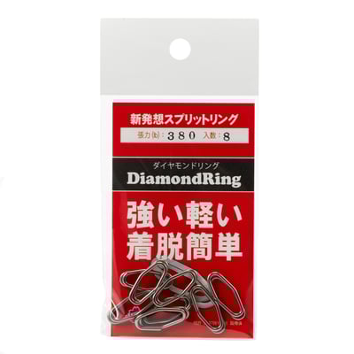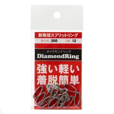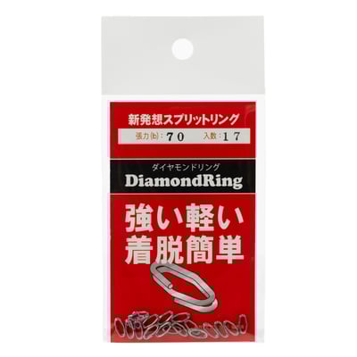 ダイヤモンドリングは‘高強度’‘軽量’‘着脱簡単’といった、既存のスプリットリングに残る不安要素を改善した新形状のスプリットリングです。