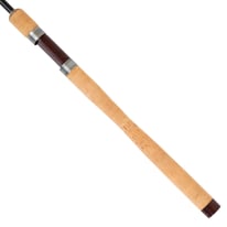 グリップ部はアングラーの曲線にあわせオリジナルシェイプのコルクを作成。エンドにはリールシート同様にメープルバールのリングを採用し内部にはオリジナルのロゴ入りメタルプレートを内蔵。