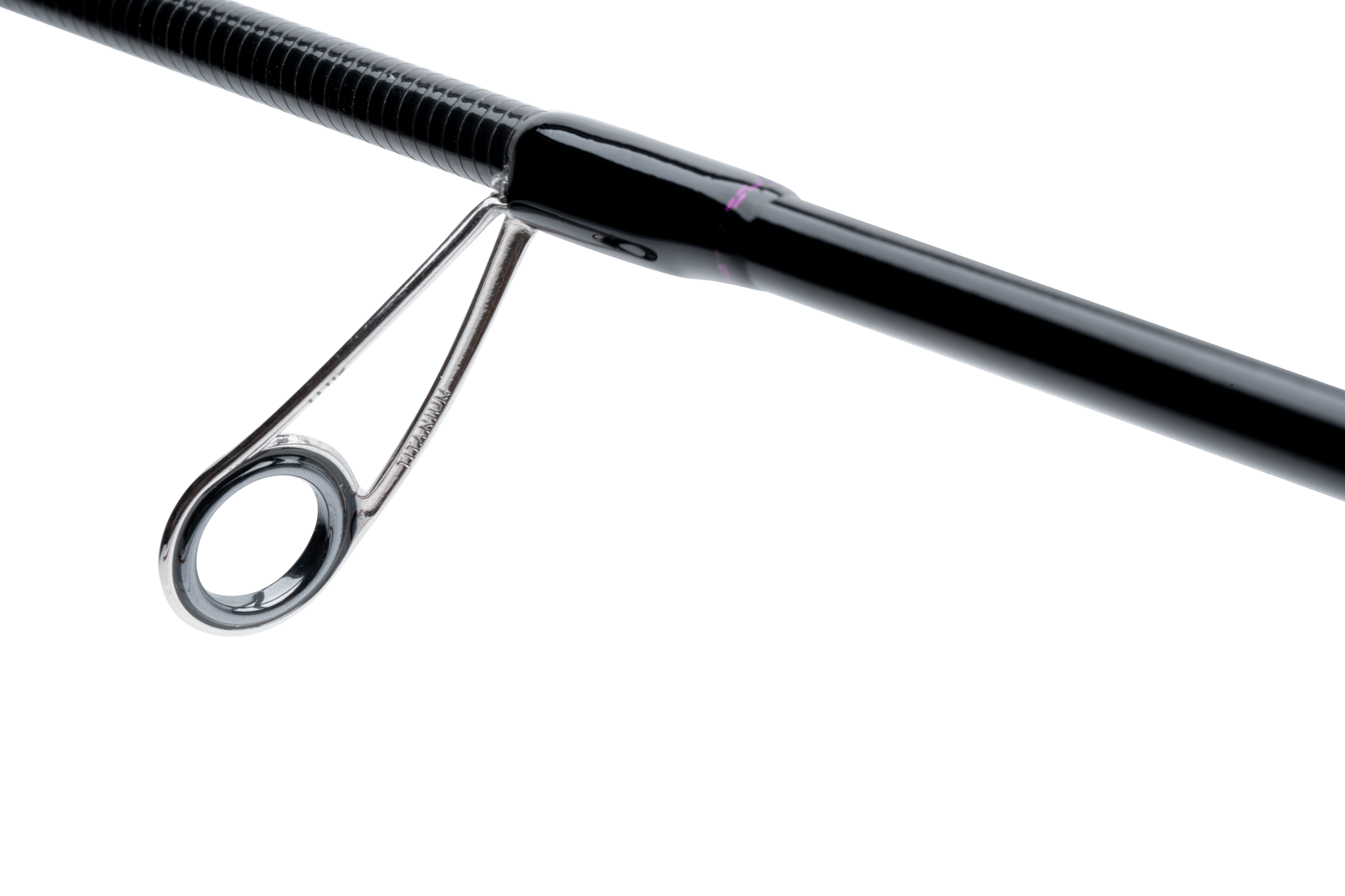 高弾性カーボンソリッドティップ採用で微細なバイトをアングラーに伝えるのはもちろん、アジの吸い込みにも極力違和感を与えない繊細なティップに設計。ガイドは富士工業製のチタンフレームSIC-Sガイドを使用。